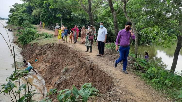 দুর্গাপুর উপজেলার গাওকান্দিযা ইউনিয়নের নদী ভাঙ্গন এলাকা পরিদর্শন ।